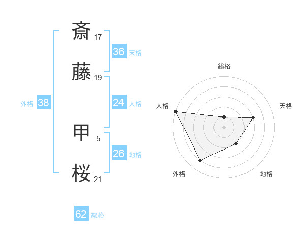 斎藤 甲桜さんを姓名の画数から五運を鑑定