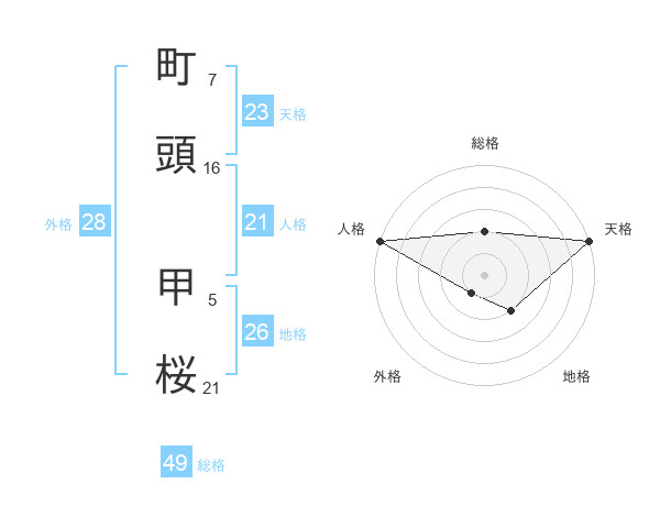 町頭 甲桜さんを姓名の画数から五運を鑑定