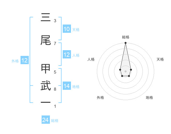 三尾 甲武一さんを姓名の画数から五運を鑑定