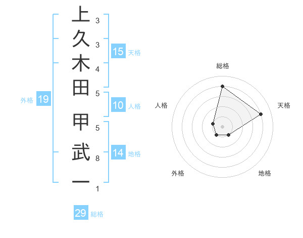 上久木田 甲武一さんの総格は29画の4点
