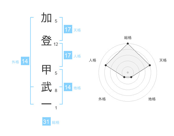 加登 甲武一さんを姓名の画数から五運を鑑定