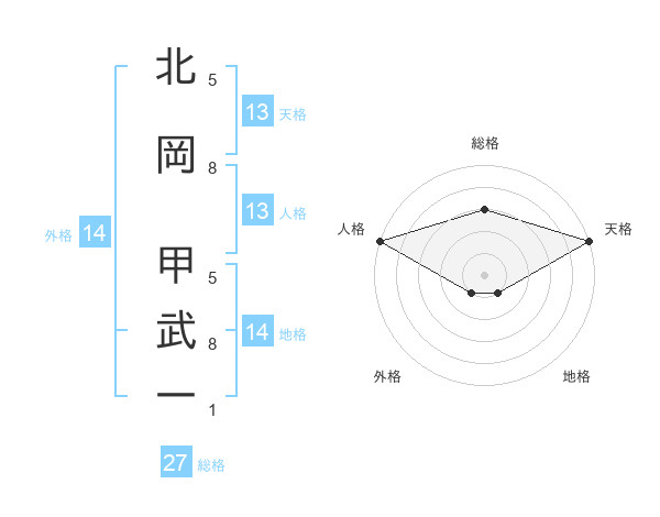 北岡 甲武一さんを姓名の画数から五運を鑑定