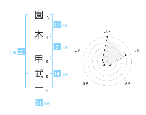 園木 甲武一さんを姓名の画数から五運を鑑定