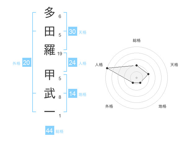 多田羅 甲武一さんの総格は44画の2点