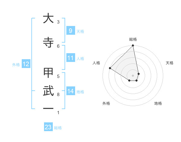 大寺 甲武一さんを姓名の画数から五運を鑑定