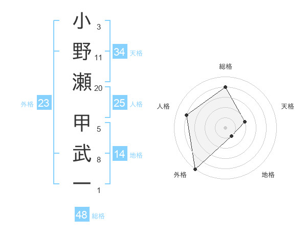 小野瀬 甲武一さんを姓名の画数から五運を鑑定