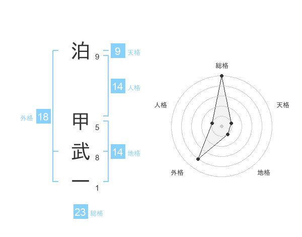 泊 甲武一さんを姓名の画数から五運を鑑定