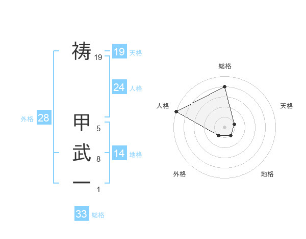祷 甲武一さんを姓名の画数から五運を鑑定