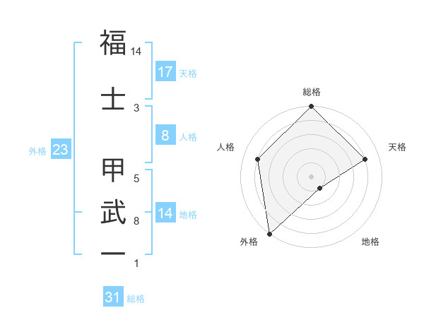 福士 甲武一さんを姓名の画数から五運を鑑定