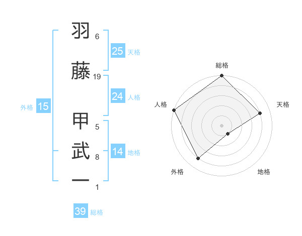 羽藤 甲武一さんを姓名の画数から五運を鑑定