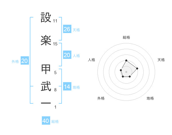 設楽 甲武一さんを姓名の画数から五運を鑑定
