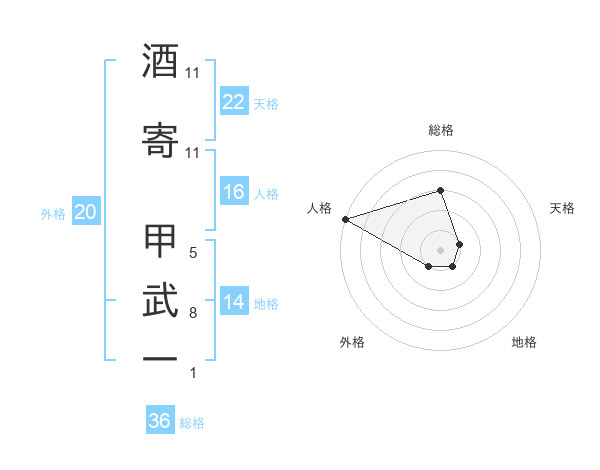 酒寄 甲武一さんを姓名の画数から五運を鑑定