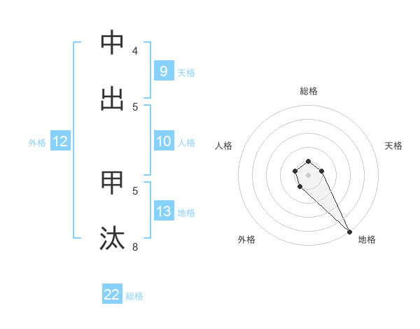 中出 甲汰さんを姓名の画数から五運を鑑定