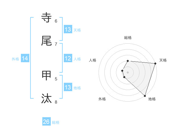 寺尾 甲汰さんの天格は13画の5点!