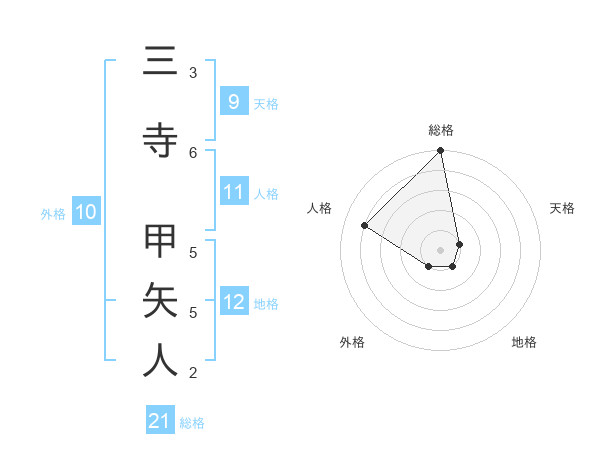三寺 甲矢人さんの総格は21画の5点!