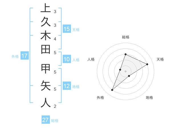 上久木田 甲矢人さんを姓名の画数から五運を鑑定