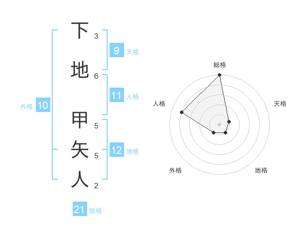 下地 甲矢人さんを姓名の画数から五運を鑑定
