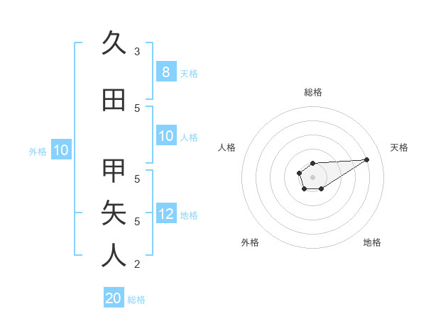 久田 甲矢人さんを姓名の画数から五運を鑑定