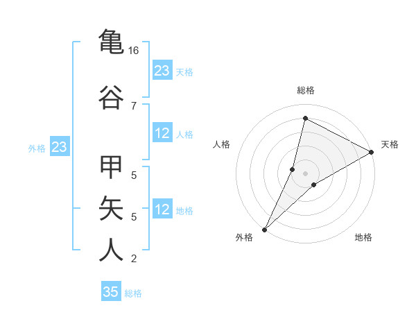 亀谷 甲矢人さんの天格は23画の5点!