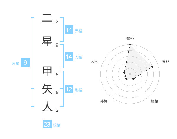 二星 甲矢人さんの総格は23画の5点!