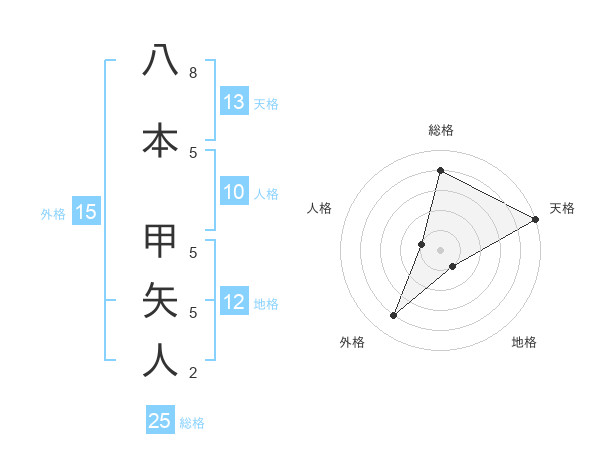 八本 甲矢人さんを姓名の画数から五運を鑑定