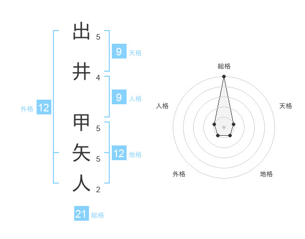 出井 甲矢人さんの総格は21画の5点!