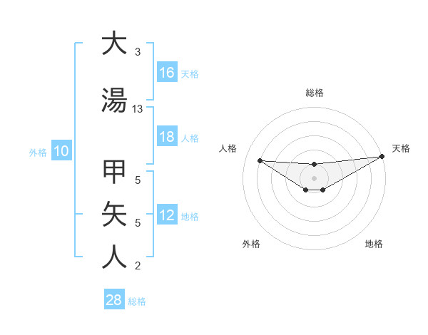 大湯 甲矢人さんを姓名の画数から五運を鑑定
