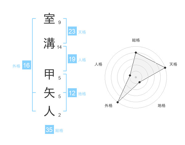 室溝 甲矢人さんの総格は35画の4点!