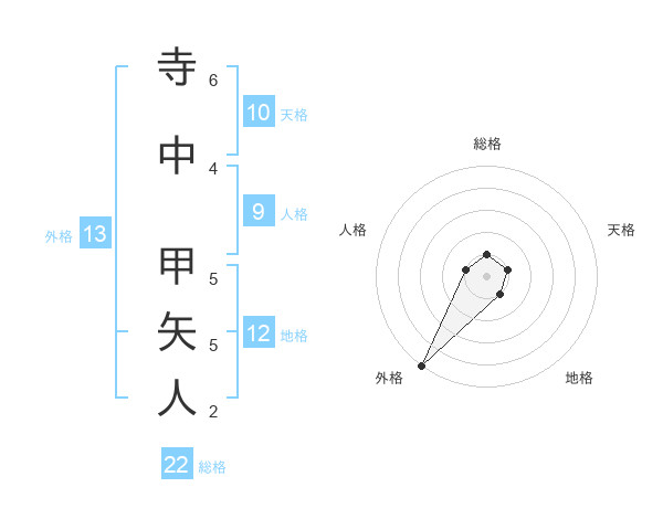 寺中 甲矢人さんを姓名の画数から五運を鑑定
