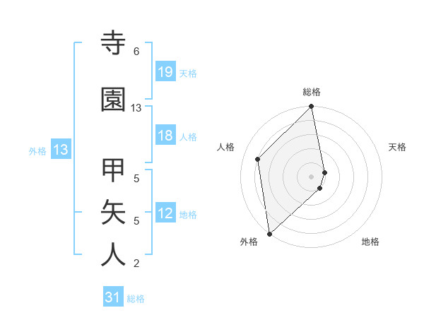 寺園 甲矢人さんを姓名の画数から五運を鑑定