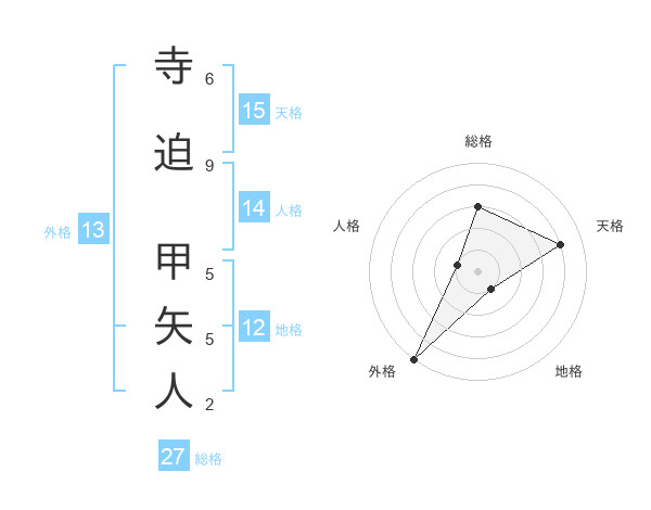 寺迫 甲矢人さんを姓名の画数から五運を鑑定