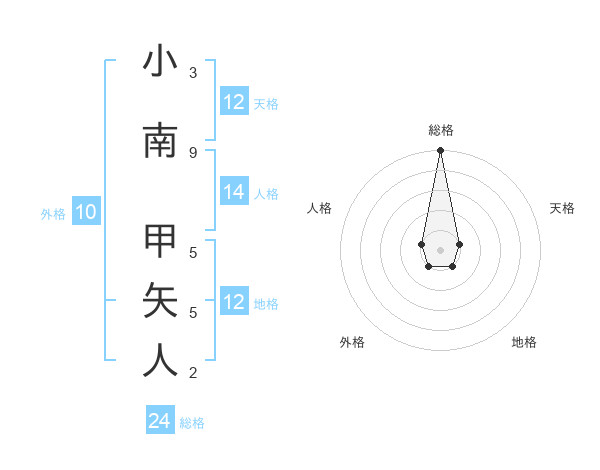 小南 甲矢人さんの総格は24画の5点!