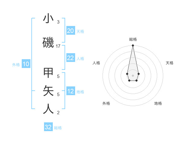 小磯 甲矢人さんの総格は32画の5点!