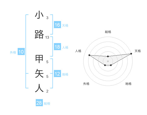 小路 甲矢人さんの天格は16画の5点!