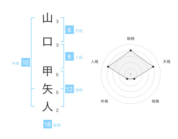 山口 甲矢人さんの総格は18画の4点!