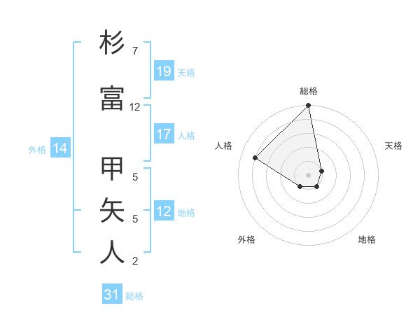 杉富 甲矢人さんを姓名の画数から五運を鑑定