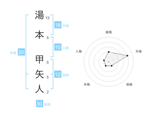 湯本 甲矢人さんの天格は18画の4点!