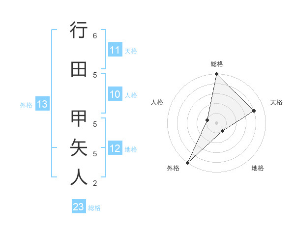 行田 甲矢人さんの外格は13画の5点!