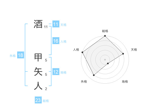 酒 甲矢人さんの総格は23画の5点!