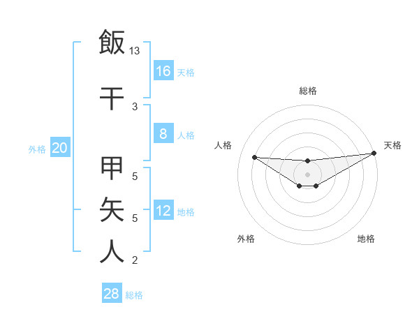 飯干 甲矢人さんの総格は28画の1点!