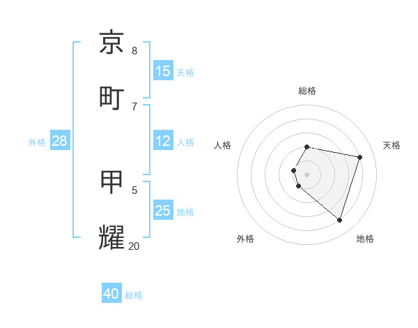 京町 甲耀さんの天格は15画の4点!