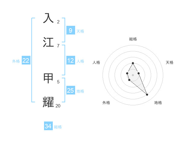 入江 甲耀さんの総格は34画の2点!