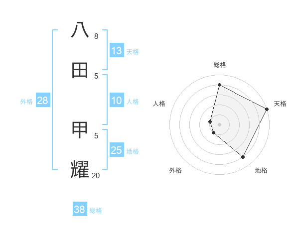 八田 甲耀さんを姓名の画数から五運を鑑定