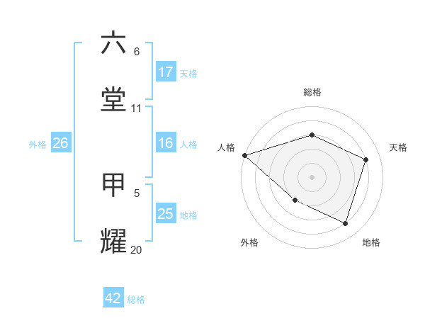 六堂 甲耀さんを姓名の画数から五運を鑑定