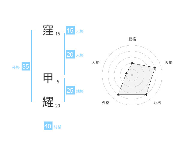 窪 甲耀さんの地格は25画の4点!