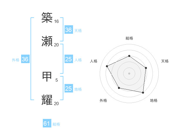 築瀬 甲耀さんを姓名の画数から五運を鑑定