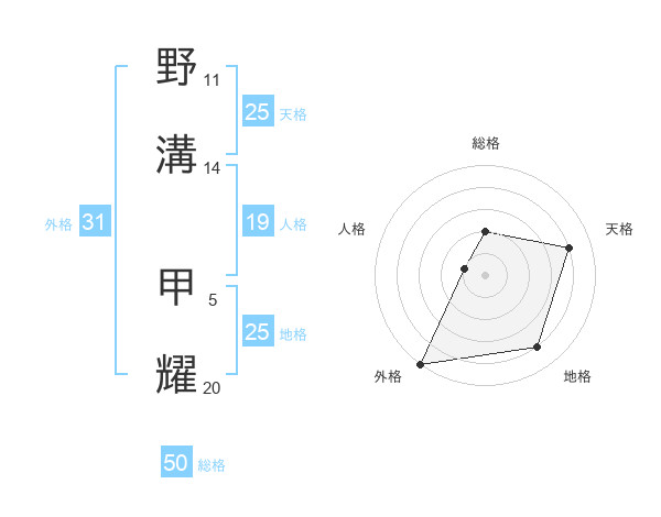 野溝 甲耀さんを姓名の画数から五運を鑑定