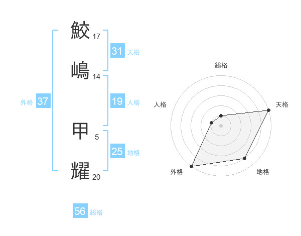 鮫嶋 甲耀さんの外格は37画の5点!