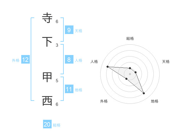寺下 甲西さんを姓名の画数から五運を鑑定