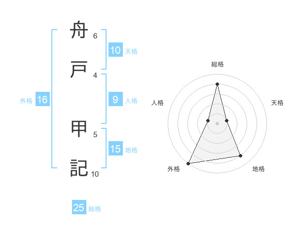 舟戸 甲記さんの総格は25画の4点!